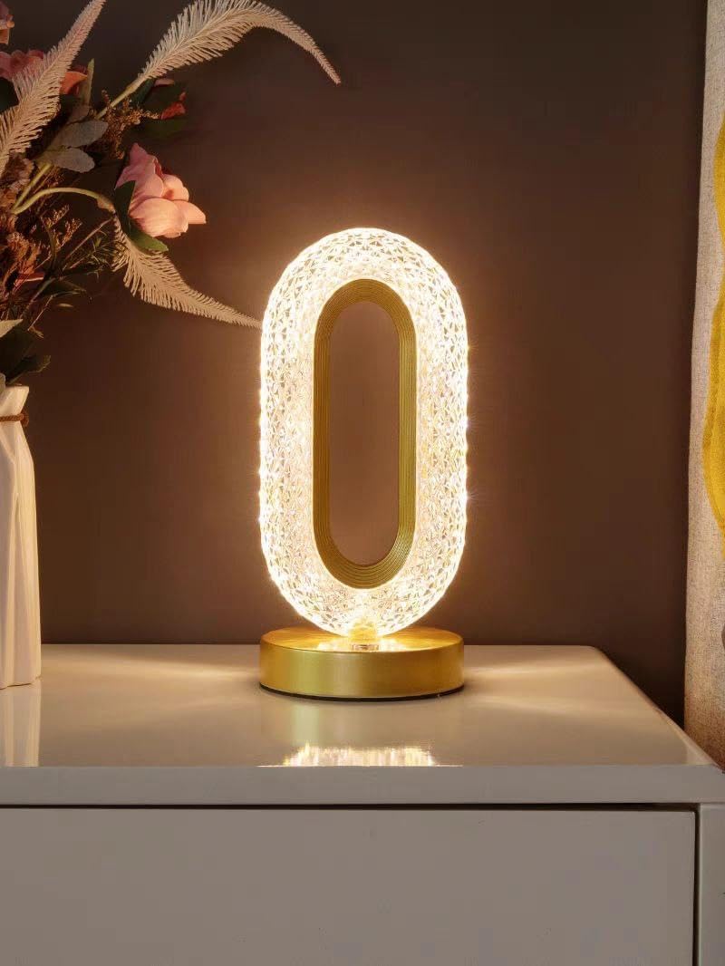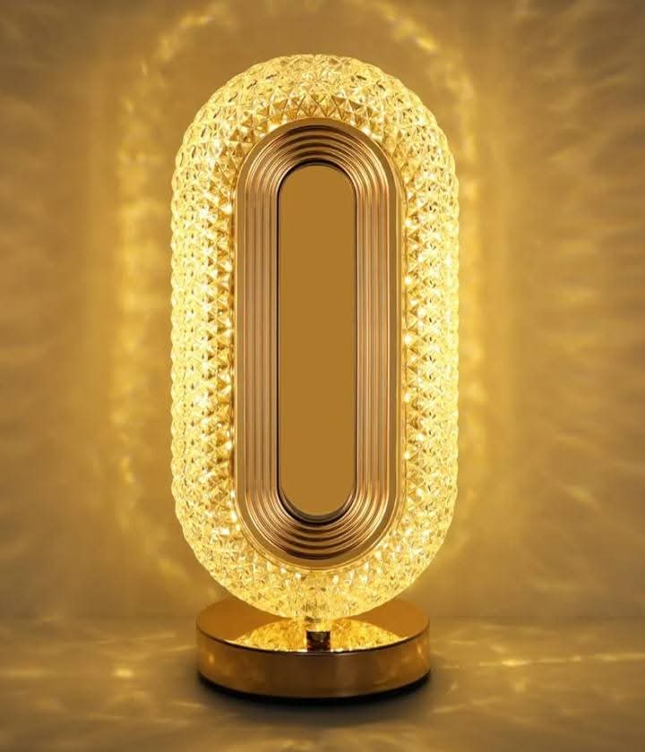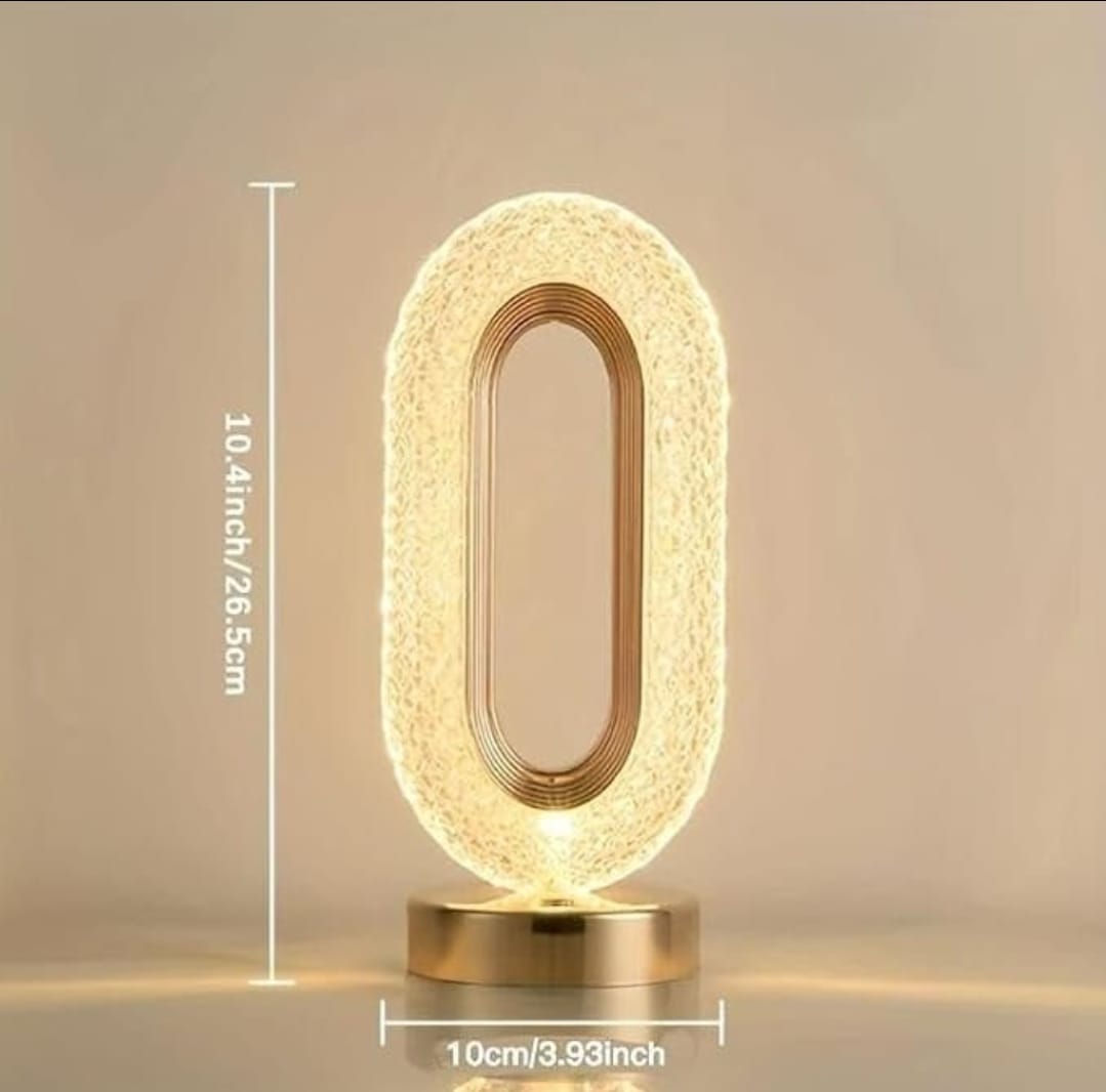 مصباح كريستال بيضاوي بلمسة تعمل باللمس – تصميم أنيق مع جسم كريستالي وشحن USB مناسب للغرف والأرف والطاولات